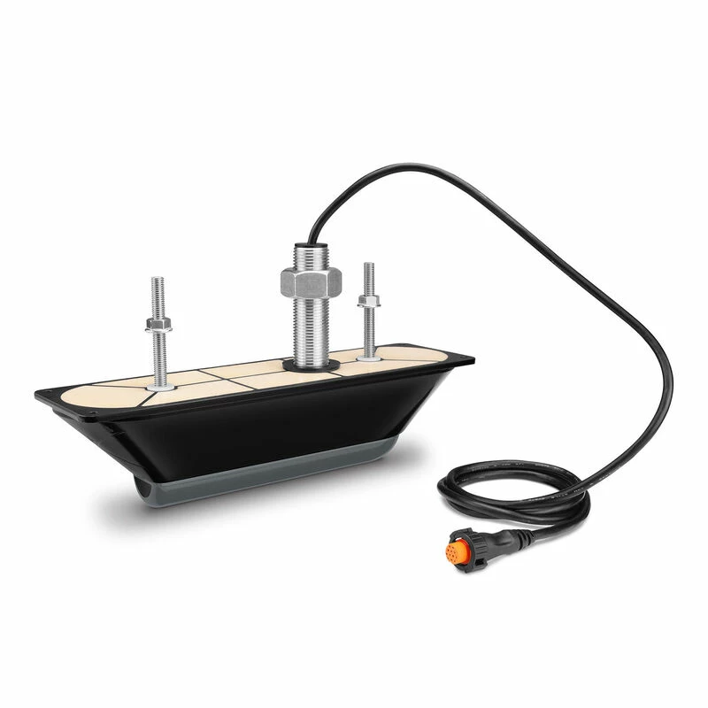This transducer with built-in fast response temperature sensor has a power rating of 500 W per element (1,500 W total); a depth of 750 ft (DownVΓΌ) and 500 ft left and right (SideVΓΌ); an operating frequency of CHIRP 455/800 kHzΒΉ; for hull deadrises less than 5 degrees. Pair it with your GCVβ’ 10 scanning sonar module.
