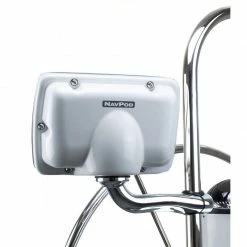 Best used for mounting of an autopilot control, sailing instrument, or small chartplotter onto an existing pedestal guard, NavPod’s RailMount fits onto any 1” or 1.25” diameter tube. With a RailMount, the NavPod can rotate 180° for easy viewing while sitting under the dodger on a rainy day. All wiring runs from the NavPod down the center of the stainless steel arm and into the pedestal guard. This application provides a clean and sturdy installation for electronics, without replacement of the pedestal guard.