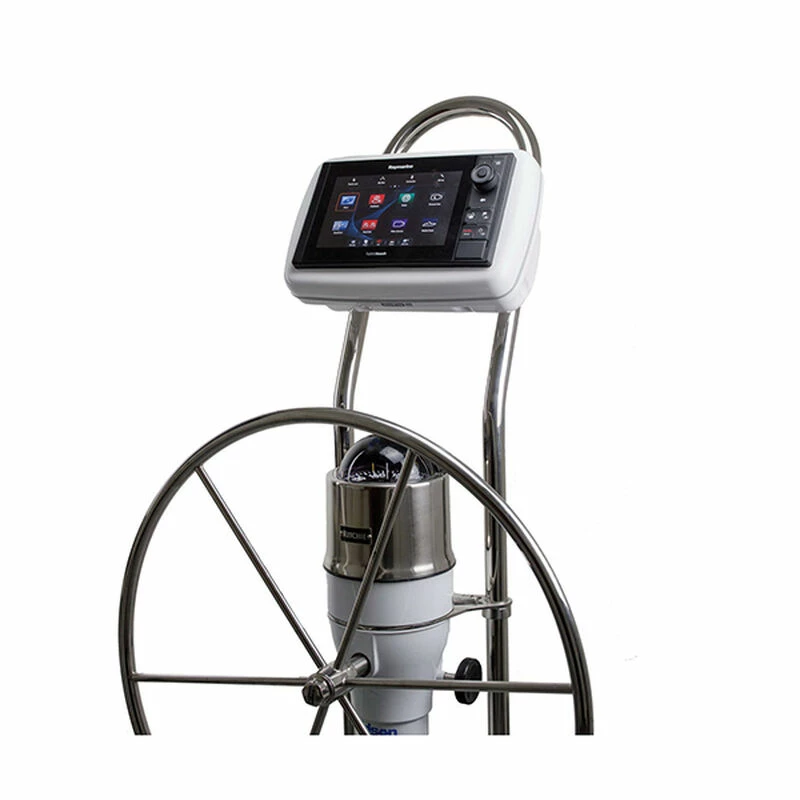 NavPod GP1170 Series for 9.5″ guard, SystemPods are for mounting multiple pieces of electronics in one NavPod. This is a good way to reduce the height of a system. In addition to mounting a radar or chartplotter, you can have room for an autopilot, instrument, stereo controller or VHF mic. A SystemPod is best mounted on a single bend AngleGuards. SystemPods for power, are for mounting on a SK135 stachion kit that can be used to mount a SystemPod on a flat surface, such as the flybridge. Stachion kits can also be used with a SystemPod for overhead mounting applications.