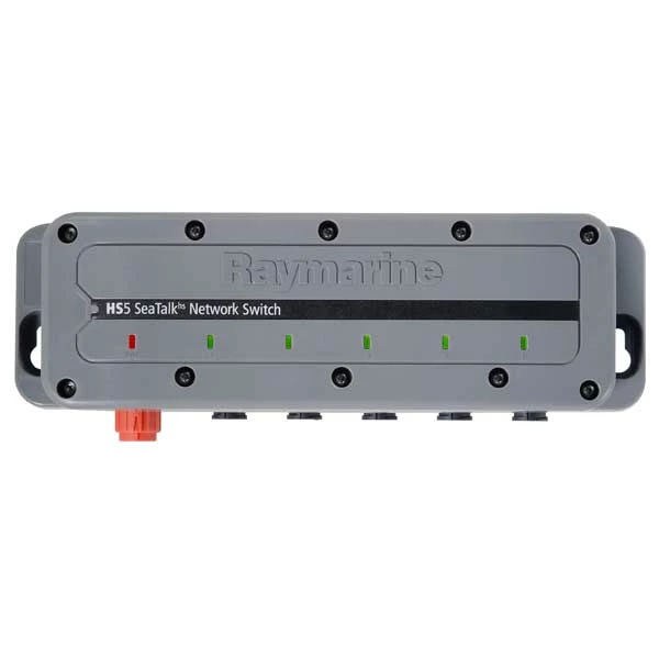 The HS5 uses the new Raynet waterproof connection system found on c-Series and e-Series displays, and provides a secure, reliable weather tight connection. Up to five displays or other peripherals can be connected directly to the HS5 network switch. The five ports all support 10 or 100 Megabit speeds when connected to peripherals like displays, scanners, sounder modules or thermal cameras. The fifth port also supports Gigabit speed for interconnecting multiple HS5 switches together on very large networks.